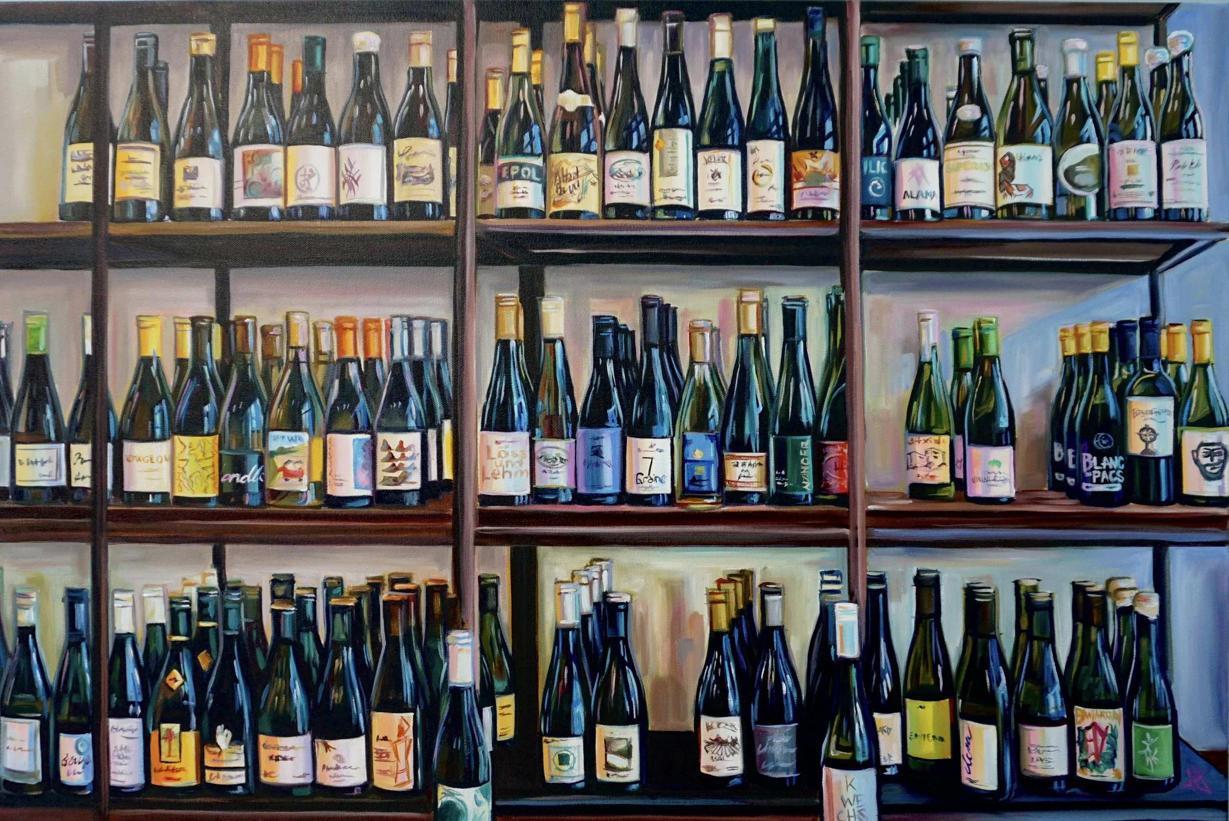 If I’m not painting something that’s living, natural, or organic, I’m more than happy to paint my second favorite subject: reflective surfaces. Call me basic, but wine and tequila bottles often make me feel just as inspired as the natural world, and painting them is just as fun as the consumption. Bottle-painting feels like collegiate-level, still-life bootcamp, but there’s something incredibly studious and rigorous in the study of light bouncing off bottles and casting fluid-lit shadows through a glass. The wet-on-wet paint technique is very different application than my organic subjects and allows me to stretch different muscles and work in various glazes and strategies.